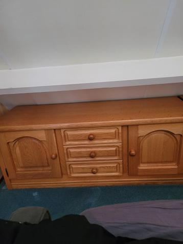 Mooie licht eiken kast met de afmetingen breedte: 152,5 cm, diepte: 50 cm, hoogte: 60 cm. Het hoekkastje kan aan beide kanten van de kast geplaatst worden, wat zorgt voor flexibiliteit in de opstellin