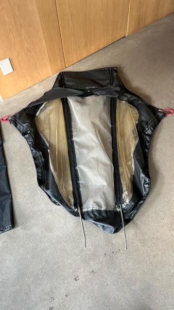 Verdient geen schoonheidsprijs meer (de transparente deel is door de zon verkleurd), maar houd de kids nog droog. Hoesje zit erbij.