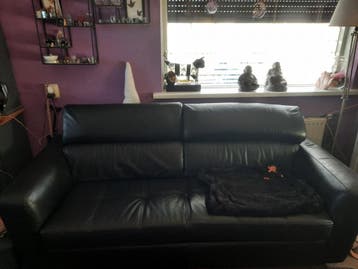 Mooie zwarte leren drie zits bank af te halen in oud warnsveld