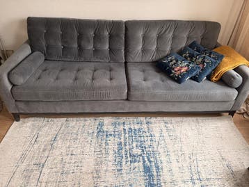 Deze mooie gecapitonneerde 3-zits bank in grijs velours kan nog best een rondje mee. Voor 17 april gratis op te halen! 2.40 Breed 88 diep de bank is ongeveer 10 jaar geleden gekocht bij loods5, heeft