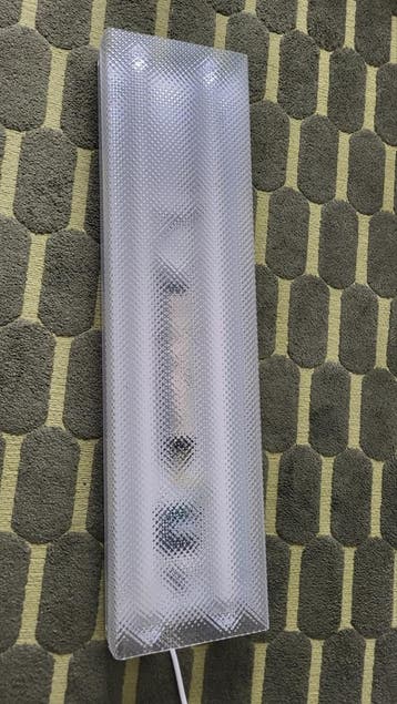 Tl bak met aan/uit stekker. De afmetingen zijn 62x16 cm. Er zit een elektronische ballast in. De lampen zijn zichtbaar in de bak.