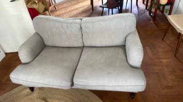 Grijs bankje 2 zits ikea ekholma een paar vlekjes maar goed is goed te reinigen. Gratis af te halen in zwolle