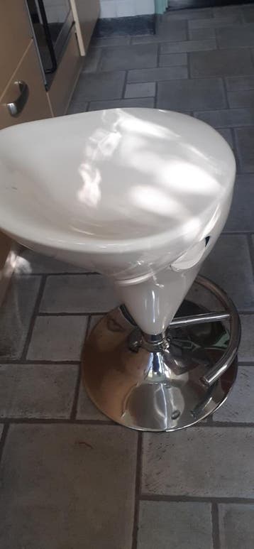 Chroom, wit kunststof. In hoogte verstelbaar.