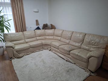 Gratis op te halen in tilburg: een ruime l-vormige bank van echt leer. De bank heeft duidelijke gebruikssporen en beschadigingen, zoals te zien op de foto's. Ideaal voor wie handig is en de bank w
