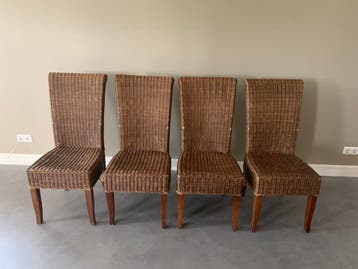 Gratis ophalen. 4 rieten/rotan eetkamerstoelen.
