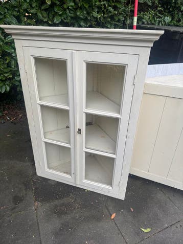 Witte hoekkast met glazen deuren. In goede staat.