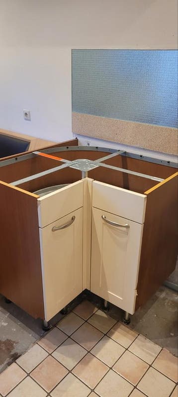 Carrousel te gebruiken in een hoekopstelling van een keuken. Het carrousel kan je ook losmaken en gebruiken in een andere hoekkast. 92 Cm hoog incl pootjes