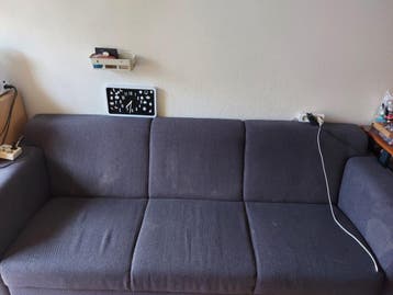 Deze comfortabele 3-zitsbank in donkergrijs is perfect voor elke woonkamer. De bank is gebruikt, maar verkeert nog in goede staat .