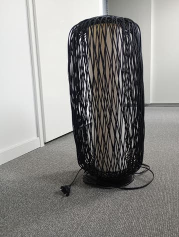 Gratis af te halen: tafellamp van zwart bamboe. De lamp is 50 cm hoog. De voet heeft een diameter van 15 cm. De diameter van de lamp is 20 cm.
