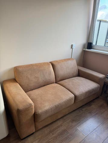 Gratis ophalen: 3-zits bank, lichtbruin nubuck leer