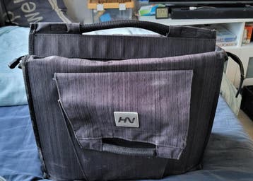 Enkelzijdige fietstas in goede staat, voorzien van een ritssluiting en klittenbandsluiting voor veilige opslag. De tas is licht stoffig door opslag, maar functioneert perfect. Inclusief een fietszadel