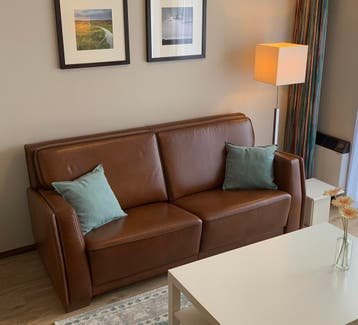 Bruin leren 3-zits bank, kan nog een ronde mee. Afhalen in enschede.