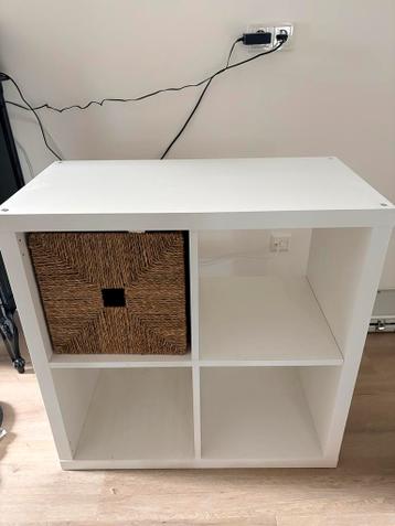 Wit vakkenkastje met rieten mand