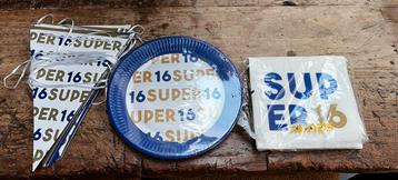 8 kartonnen borden vlaggen slinger 17 papieren servetten