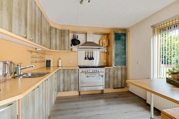 Deze hoekkeuken is inclusief apparatuur. Het aanrechtblad is van hout. De keuken moet zelf gedemonteerd worden.