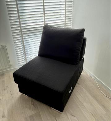 Praktisch verlengstuk van een bank, ook perfect te gebruiken als losse stoel. De stoel is bekleed met een duurzame zwarte stof en heeft compacte afmetingen van 75 cm breed, 92 cm diep en 90 cm hoog. I
