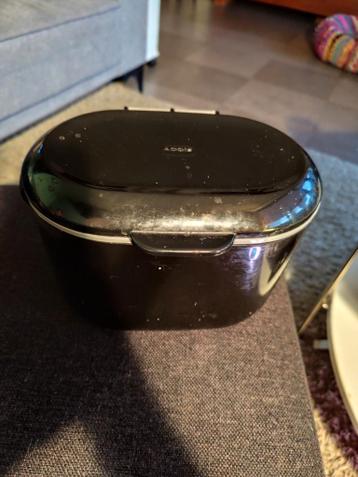 Een zwart prullenbakje, geschikt voor op het aanrecht. Het bakje is in goede staat en is gratis af te halen. Handig voor klein afval in de keuken.