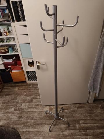 Mooie, stevige grijze staande kapstok met 8 haken. Ideaal voor jassen, tassen en sjaals. Past in elke hal of entree. In goede staat en direct te gebruiken.
