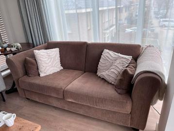 Bruin stoffen bank 1.90 Breed incl armleuningen, zitgedeelte 1,47 breed, zitvlak 0,46 hoog