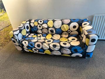 Gratis af te halen: een gebruikte klippan bank met een unieke, kleurrijke print. De bank kan een leuke toevoeging zijn aan een studentenkamer, speelkamer of als extra zitplek. De hoes is afneembaar en