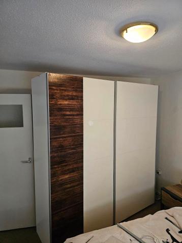 Grote kledingkast met schuifdeuren, binnenin voorzien van tussenschotten en hangruimte. Breedte 200 cm hoogte 217 cm. Gedemonteerd, met enige schade tijdens de demontage. Direct te downloaden. Ik geef