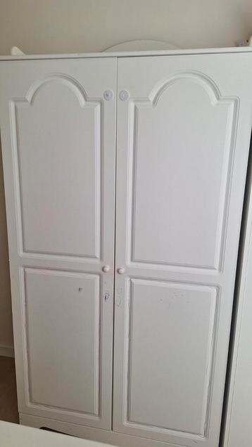 Stevige kledingkast voor de de kinderkamer. Met lichte gebruikssporen en wat creatieve kunst van de kinderen. Nog een top kast, van stevig materiaal, als je 'm schoon krijgt. Of gewoon als extra k