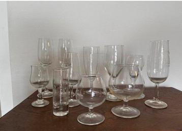 Een verzameling van 11 verschillende borrelglazen. Er zijn diverse vormen en maten, zoals te zien is op de foto's. Ze zijn allemaal van helder glas. Neem ook een kijkje bij onze andere advertentie