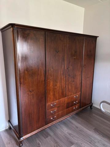 Jaren zestig kast met links en rechts ruimte om kleding te hangen. Middengedeelte met 4 legplanken en daaronder 3 ruime lades. Afmetingen hoogte1.80M lengte 2.10M diepte 55cm
