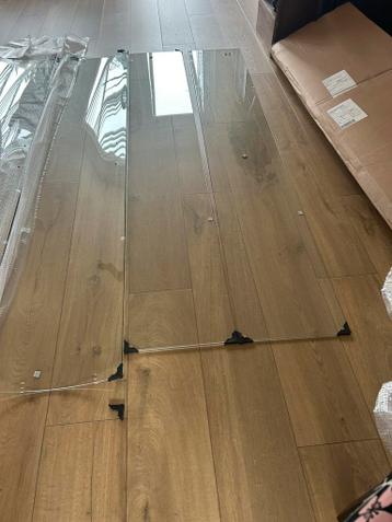 Schuifdeuren voor douchecabine met 2 staanders mat zwart. Nieuw in doos. Geen ophanging of rollers.