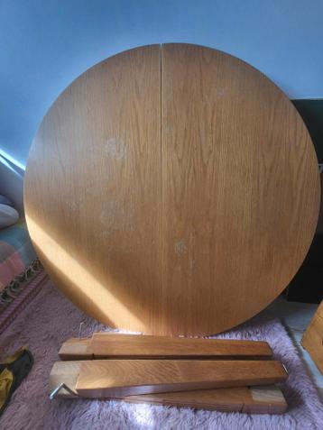 Stevige, uitschuifbare ronde tafel van degelijke kwaliteit .110Cm , extra stuk 35cm . De tafel is gebruikt, maar verkeert nog in stevige staat en is prima bruikbaar. Pimpen of n kleedje erover! Voor w