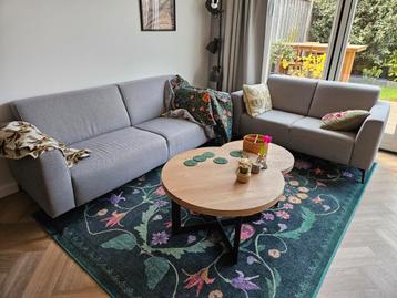 Set van twee comfortabele stevige banken: een ruime 3-zitsbank en een compacte 2-zitsbank. Beide banken zijn uitgevoerd in een moderne grijze stof en passen perfect in vrijwel elk interieur. Ze zijn i