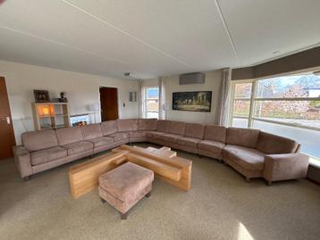 Te koop wegens verhuizing 10 persoons bank en poef van skalma, bekleding zitkussens her en der niet in topstaat. Salontafel is ook te koop in andere advertentie