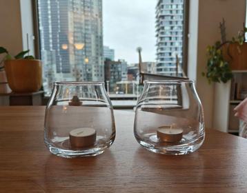 Twee glazen kaarsenhouders/waxinelichtjeshouder. Op te halen naast spaklerweg station ✨