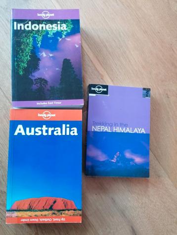Drie lonely planet reisgidsen: indonesië, australië en trekking in de nepal himalaya. Ideaal voor het plannen van je volgende avontuur! Conditie is gelezen, maar nog in goede staat.