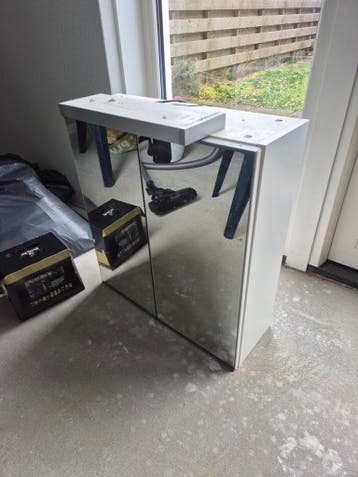 Badkamers kast met spiegel en licht breedte is 60cm, hoogte is 63 en diepte 21,5 gratis