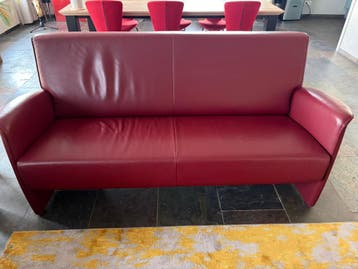 In perfecte staat zonder beschadigingen: rood leren bank. Zie voor maten de foto’s. Gratis ophalen in reuver