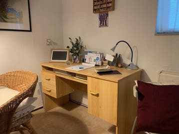 Leuk bureau van hout. Ziet er zeer netjes uit. Afmetingen: 125 x 54 cm gratis op te halen op 2de paasdag (6 april) of 11 april in amersfoort (kattenbroek)
