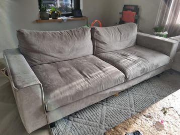 Comfortabele 3,5-zits bank 'jonas' van goossens. De bank is gebruikt, maar in goede staat. De voering van de stof aan de voorkant is naar beneden gezakken, dit hebben we geprobeerd te reparere