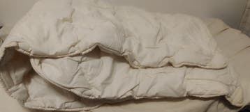 Dekbed van 100% katoen voor 140-135 cm bed met zachte holle vezel vulling (300 g/m²). Het dekbed is licht en comfortabel, anti‑allergisch en wasbaar op 40°c. Er zijn enkele zichtbare vlekken aanwezig