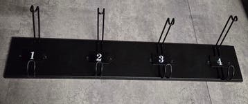 Gratis af te halen bij aankoop van één van mijn advertenties. Zwarte wandkapstok met vier haken, ideaal voor jassen, tassen of sjaals. De kapstok is gemaakt van mdf en metaal en heeft de afmetingen 56