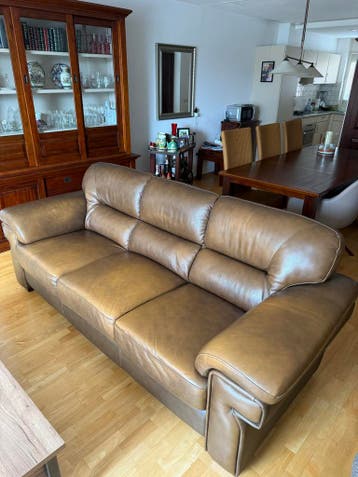 Mooie en comfortabele lederen 3-zits bank gratis af te halen. Verkeert nog in goede staat en is klaar voor een tweede leven. Ideaal voor wie op zoek is naar een ruime bank zonder kosten. 244Cm breed g