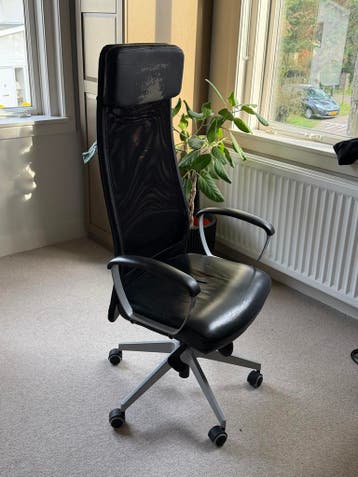 Gratis af te halen: een gebruikte ikea bureaustoel. De stoel is nog functioneel, maar heeft duidelijke gebruikssporen, vooral op de hoofdsteun en zitting. Ideaal voor wie een extra stoel nodig heeft o