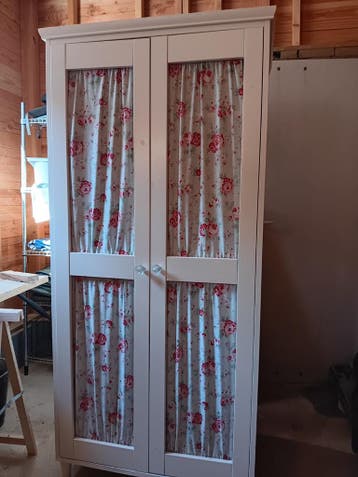 Mooie kledingkast, gebruikt maar nog in nette en goede staat. De kast heeft twee deuren met een charmante rozenprint aan de binnenkant. Ideaal voor de slaapkamer of kinderkamer. Gratis af te halen.