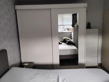 2 deurs schuifdeur kledingkast achter ieder deur 2 legplanken en een roede en acher een deur ook een 3 ladeblok in goede staat