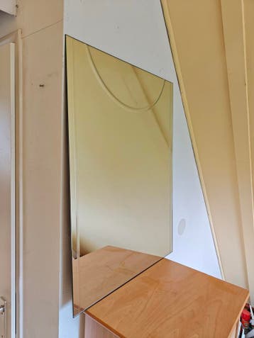 Aangeboden: een set van twee spiegels, ideaal voor elke ruimte in huis. De spiegels hebben een modern design en zijn in goede staat. Ze kunnen verticaal worden opgehangen. Perfect voor de hal, woonkam