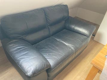 Comfortabele zwarte tweezitsbank van nappaleer. Ideaal voor een kleine woonkamer of als extra zitplek. De bank is gebruikt, maar in goede staat. Gratis af te halen vanaf 3 april.