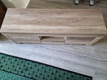 Gratis op te halen tv kast/televisie meubel. Mooie lichte kleur en is pas 3 jaar oud en verkeerd in nieuwstaat. Er zijn twee deurtjes en een open vak + lade de kast is 1.55 Mtr lang, 48cm diep en ±49