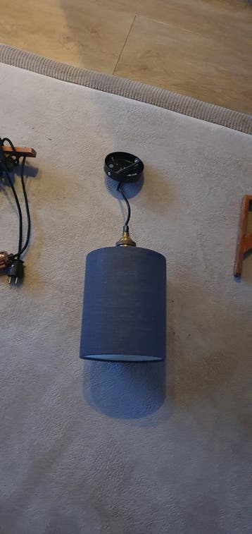 Gratis op te halen: een houten wandbeugel met een zwart snoer, schakelaar, stekker en een koperkleurige fitting. Ideaal voor een diy-lamp project of als extra verlichting. Het plafondlampje heeft een