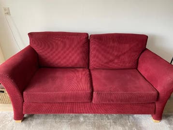 Nog nette ruime 2 zits in een donker rode ribstof. 170 Cm breed. Mag per direct gratis opgehaald worden bij mijn schoonouders in epe, uiterlijk donderdag 9 april, ivm de nieuwe bank die 10 april wordt