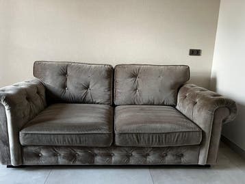 Heerlijke bank sterke velvet stof. Kleur: catania grey er zijn nog enkele knopen bewaard. Dus voor de handige, kun je de bank opknappen. Snel afhalen! Breedte: 2,17 m diepte: 1,10m (zitkussens 0,80 m)